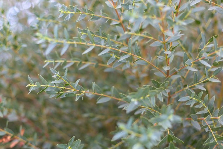 Eucalyptus parvifolia è un albero sempreverde slanciato espanso alto fino a 18-20 metri, caratterizzato da tronco ben eretto e corteccia liscia, grigia e bianca che si sfalda a fine estate.