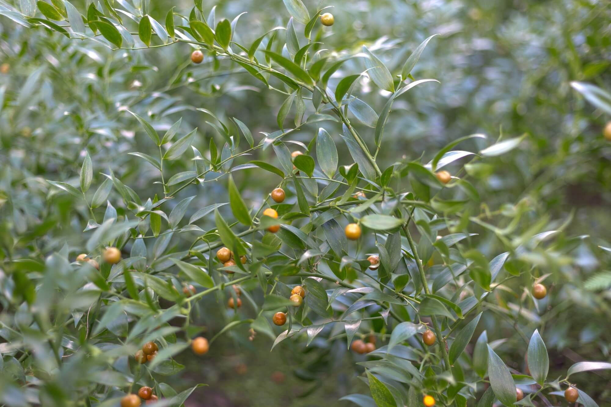 Il Ruscus Racemosus è una pianta dell’Asia sud orientale, cespuglietto suffrutico, rizomatico sempreverde.